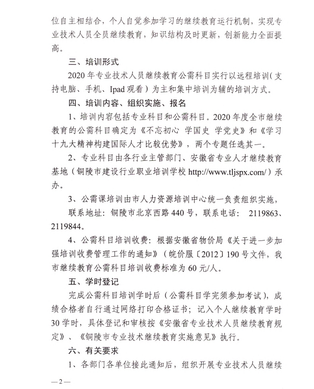 關(guān)于開(kāi)展2020年度銅陵市專業(yè)技術(shù)人員繼續(xù)教育公需科目培訓(xùn)的通知
