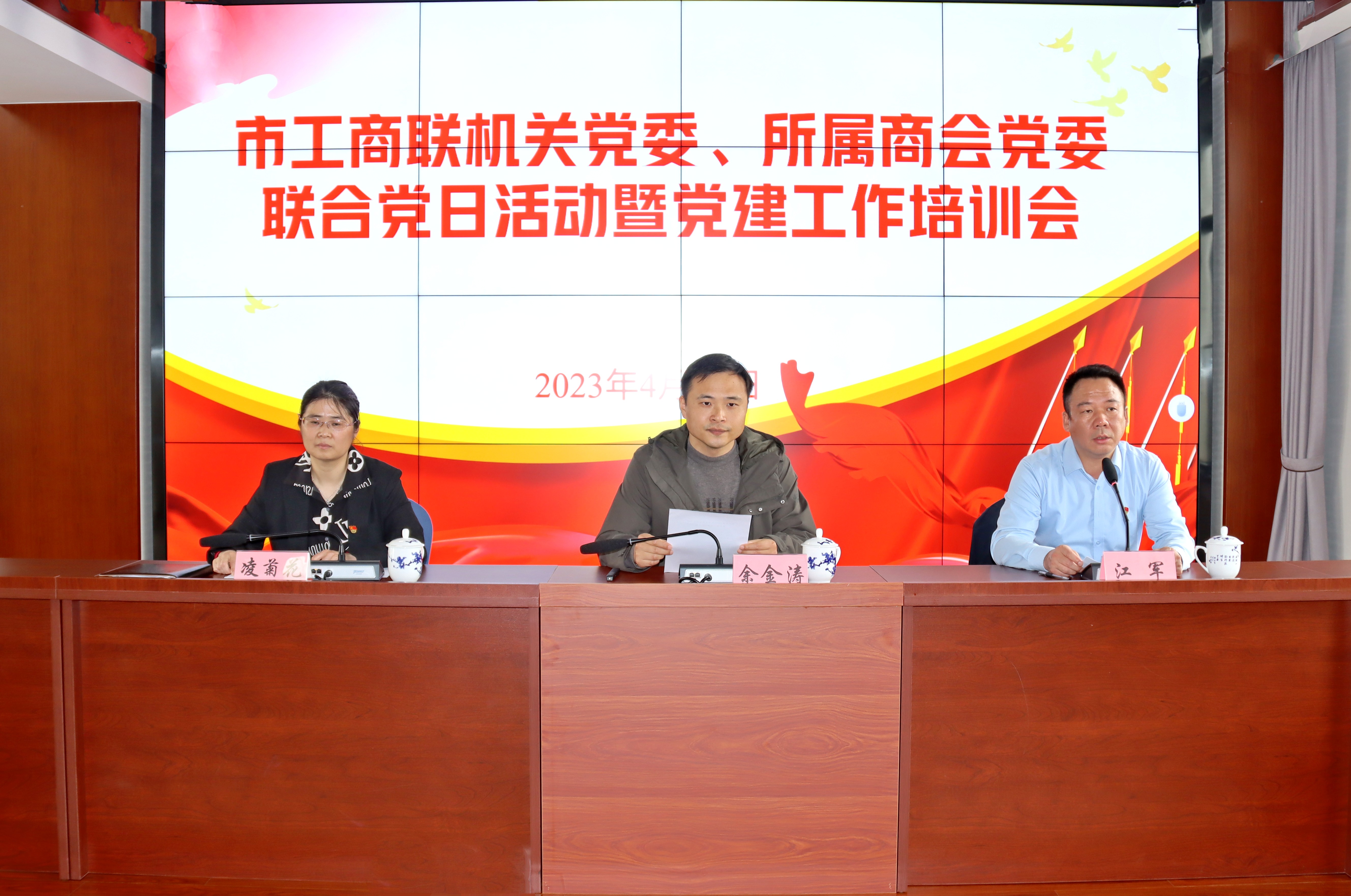 2023年4月14日上午,國泰建筑受邀參加市工商聯(lián)機(jī)關(guān)黨委與所屬商會(huì)黨委聯(lián)合黨日活動(dòng)暨黨建工作培訓(xùn)會(huì),展現(xiàn)公司黨建成果。市工商聯(lián)黨組書記、常務(wù)副主席楊益安、駐會(huì)副主席江軍、市委組織部領(lǐng)導(dǎo)余金濤等人出席活動(dòng),公司黨支部副書記凌菊花受邀參加。