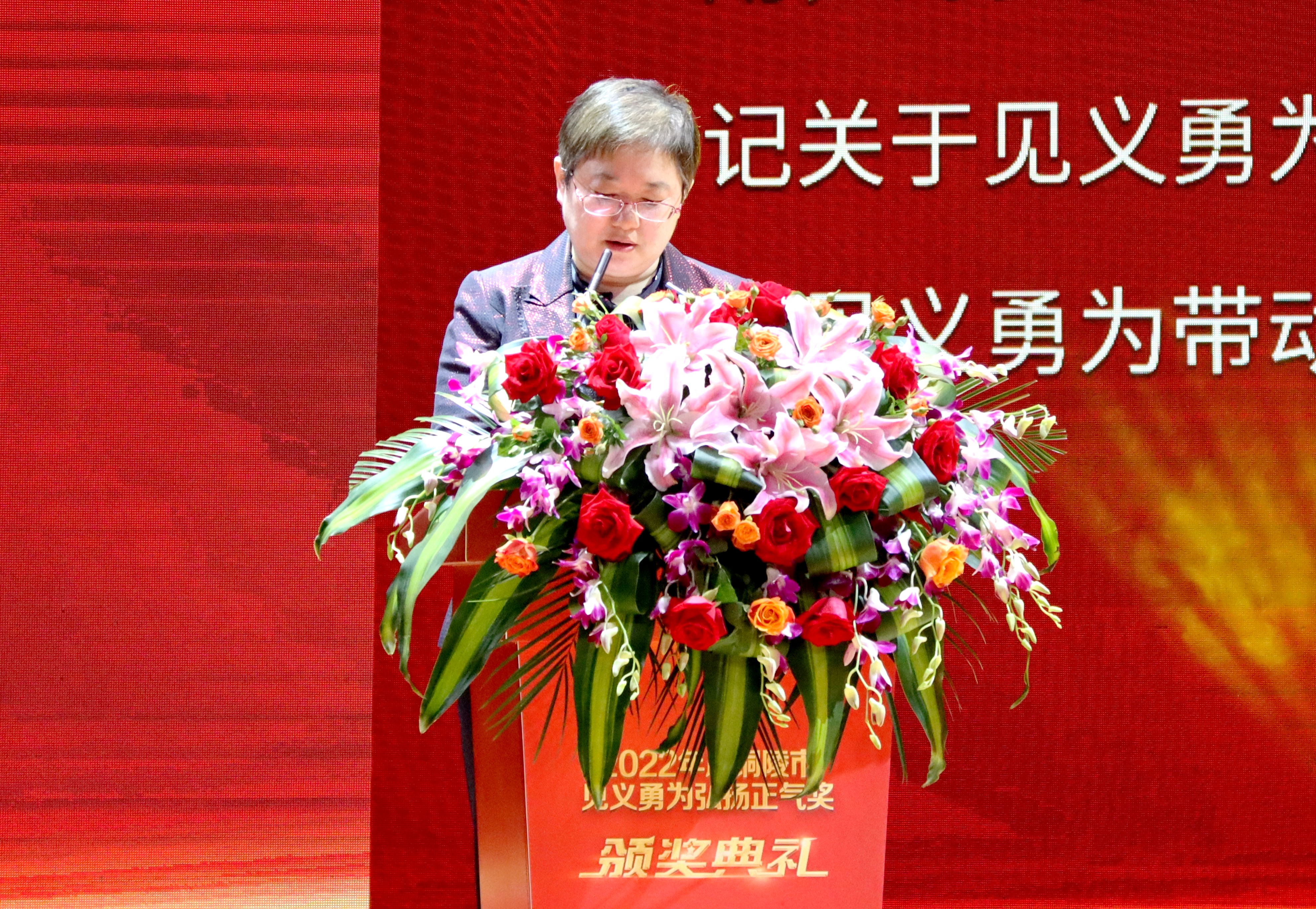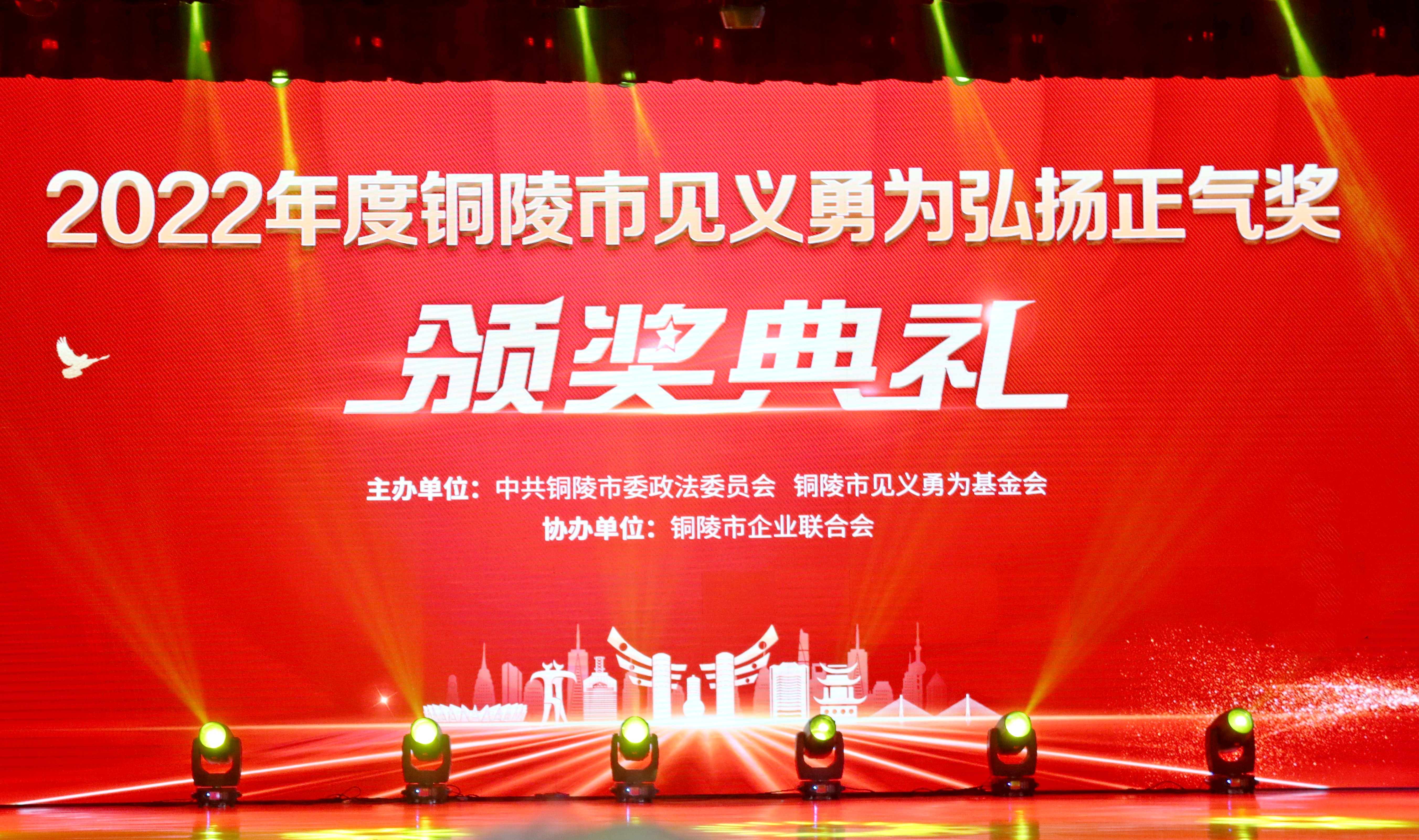 市委常委、政法委書記昌紅梅在頒獎典禮開始前宣讀丁純書記批示精神。丁純在批示中指出:銅陵是一座文明之城、平安之城,也是一座好人之城、英雄之城。全市廣大黨員干部群眾要以先進(jìn)為榜樣,深入學(xué)習(xí)貫徹黨的二十大精神和習(xí)近平總書記關(guān)于見義勇為事業(yè)的重要指示精神,扎實做好宣傳引導(dǎo)、關(guān)愛激勵、權(quán)益保障等工作,積極傳播真善美、傳遞正能量,以見義勇為帶動見義眾為,崇德向善、見賢思齊、擔(dān)當(dāng)作為,為譜寫現(xiàn)代化幸福銅陵建設(shè)新篇章匯聚強(qiáng)大力量。