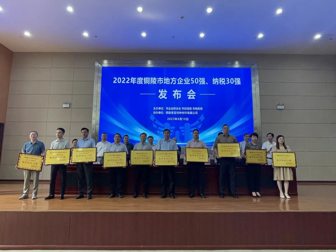 會上頒布了2022年度銅陵市“地方企業(yè)50強”入圍名單,國泰建筑榮獲該項榮譽稱號。