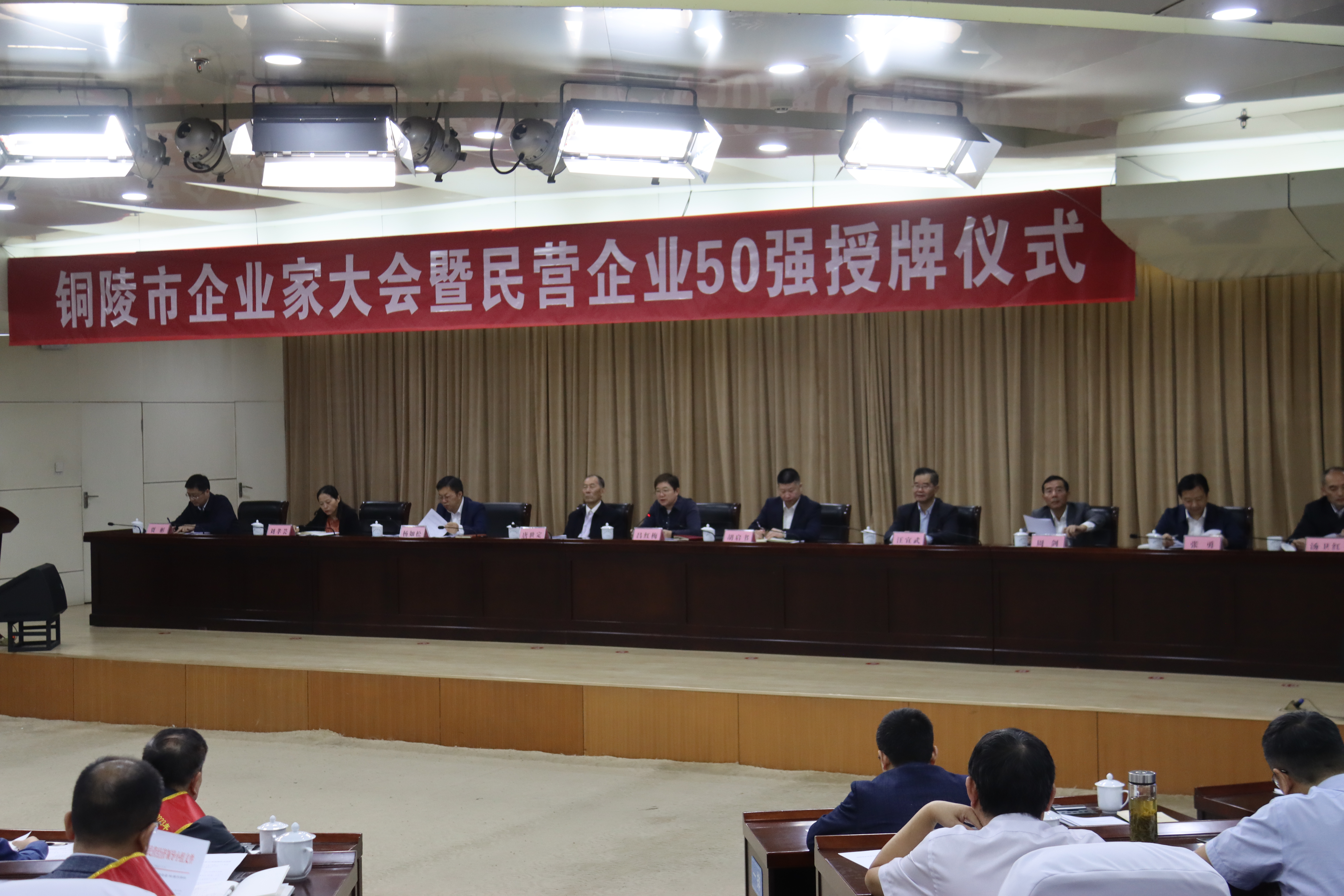 11月1日,銅陵市企業(yè)家大會暨民營企業(yè)50強授牌儀式在市行政會議中心隆重舉行。銅陵市委副書記、政法委書記昌紅梅,市委常委、統(tǒng)戰(zhàn)部部長胡啟書,銅陵市人民政府副市長楊如松等領導親臨現(xiàn)場。