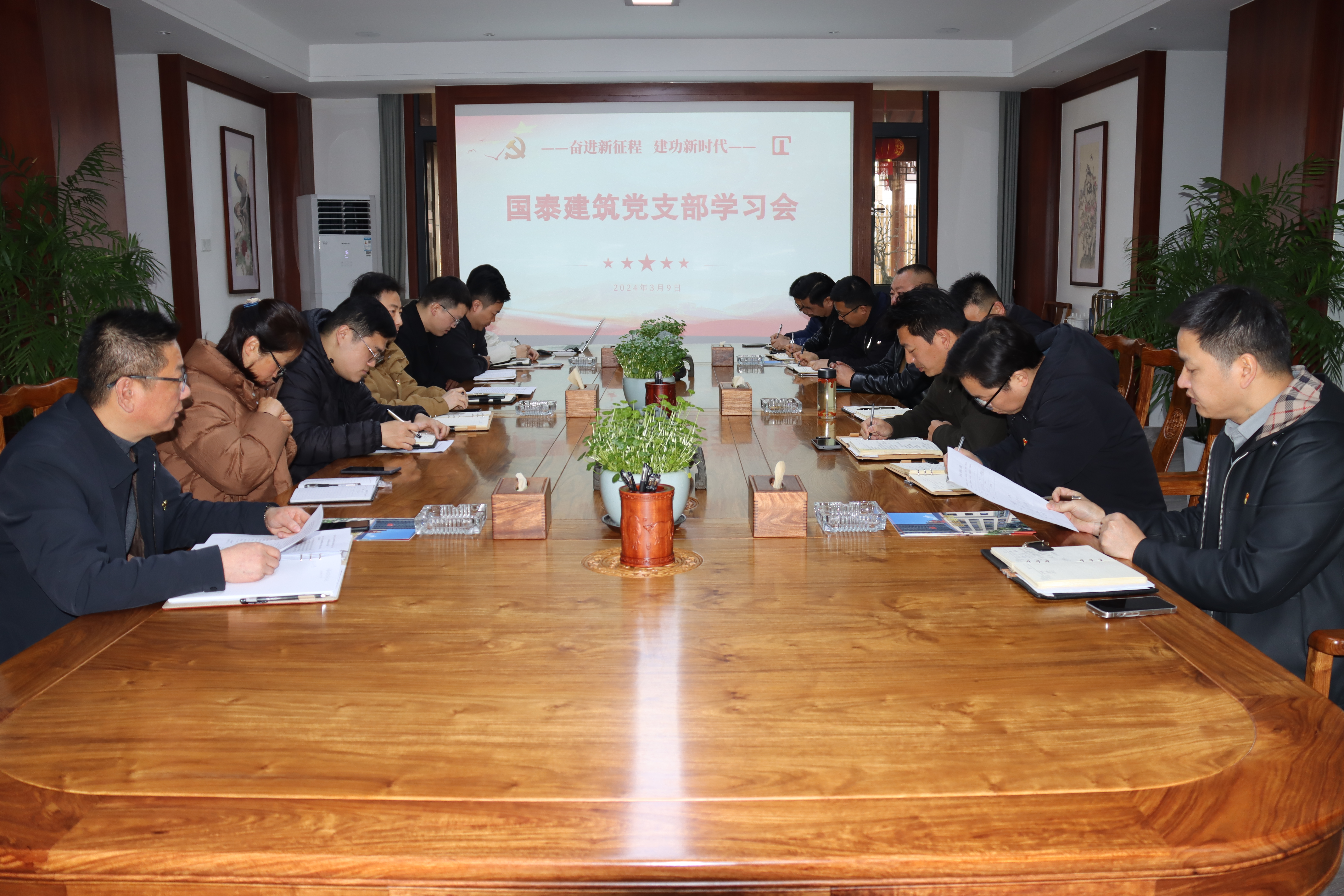 國(guó)泰建筑黨支部于2024年3月9日上午9時(shí),在公司二樓黨建會(huì)議室隆重召開了一場(chǎng)黨支部學(xué)習(xí)會(huì)。此次學(xué)習(xí)會(huì)旨在深入學(xué)習(xí)和貫徹重要會(huì)議精神與指示,提升黨員的政治理論水平和業(yè)務(wù)素養(yǎng),進(jìn)一步推動(dòng)黨支部建設(shè)。