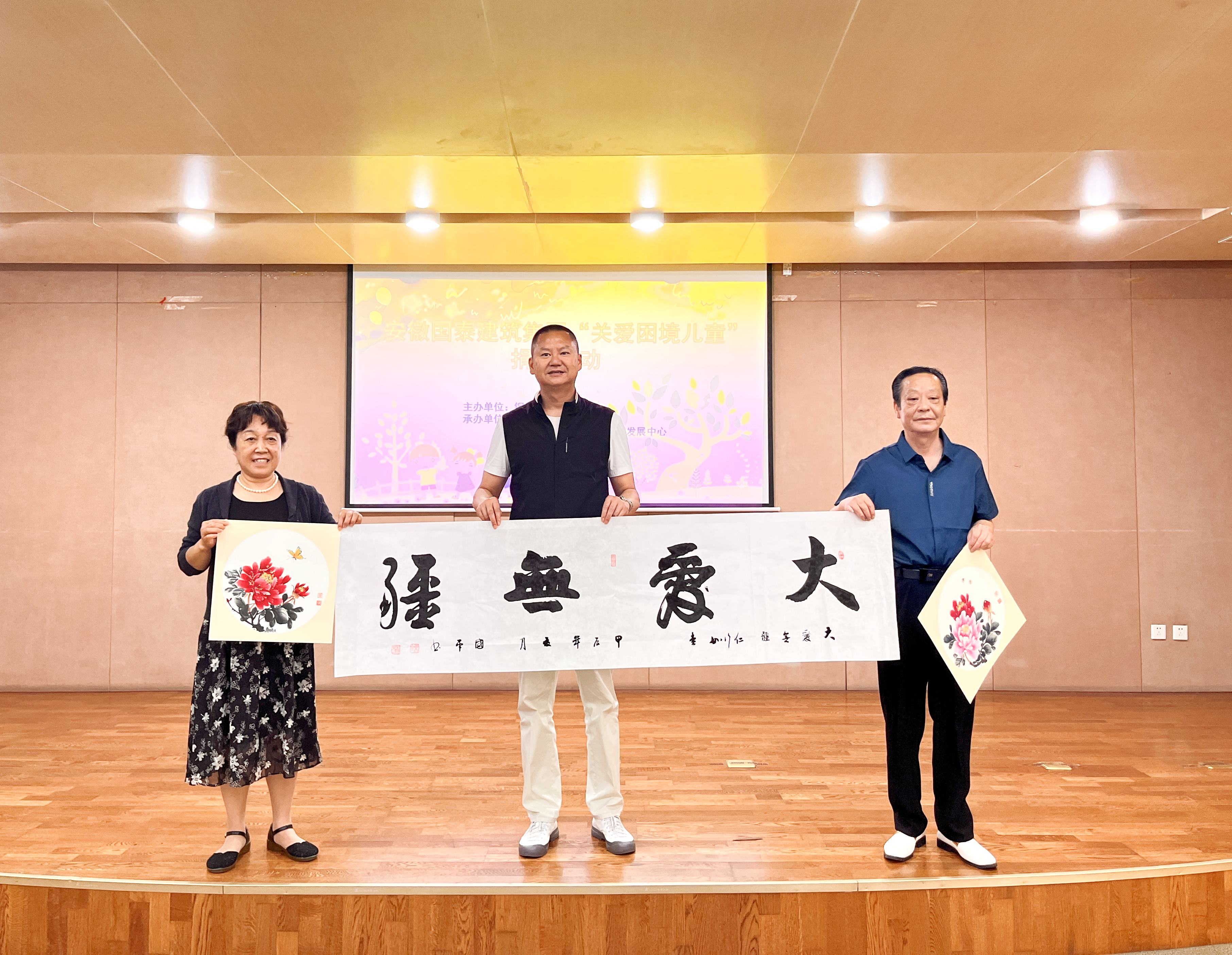 希望困境兒童通過努力和奮斗,不氣餒、不放棄,樹立信心,奮發(fā)進取,實現(xiàn)了自己的人生價值,成為社會有用之才?;顒又袘麜彝魢浆F(xiàn)場向國泰建筑董事長贈字。