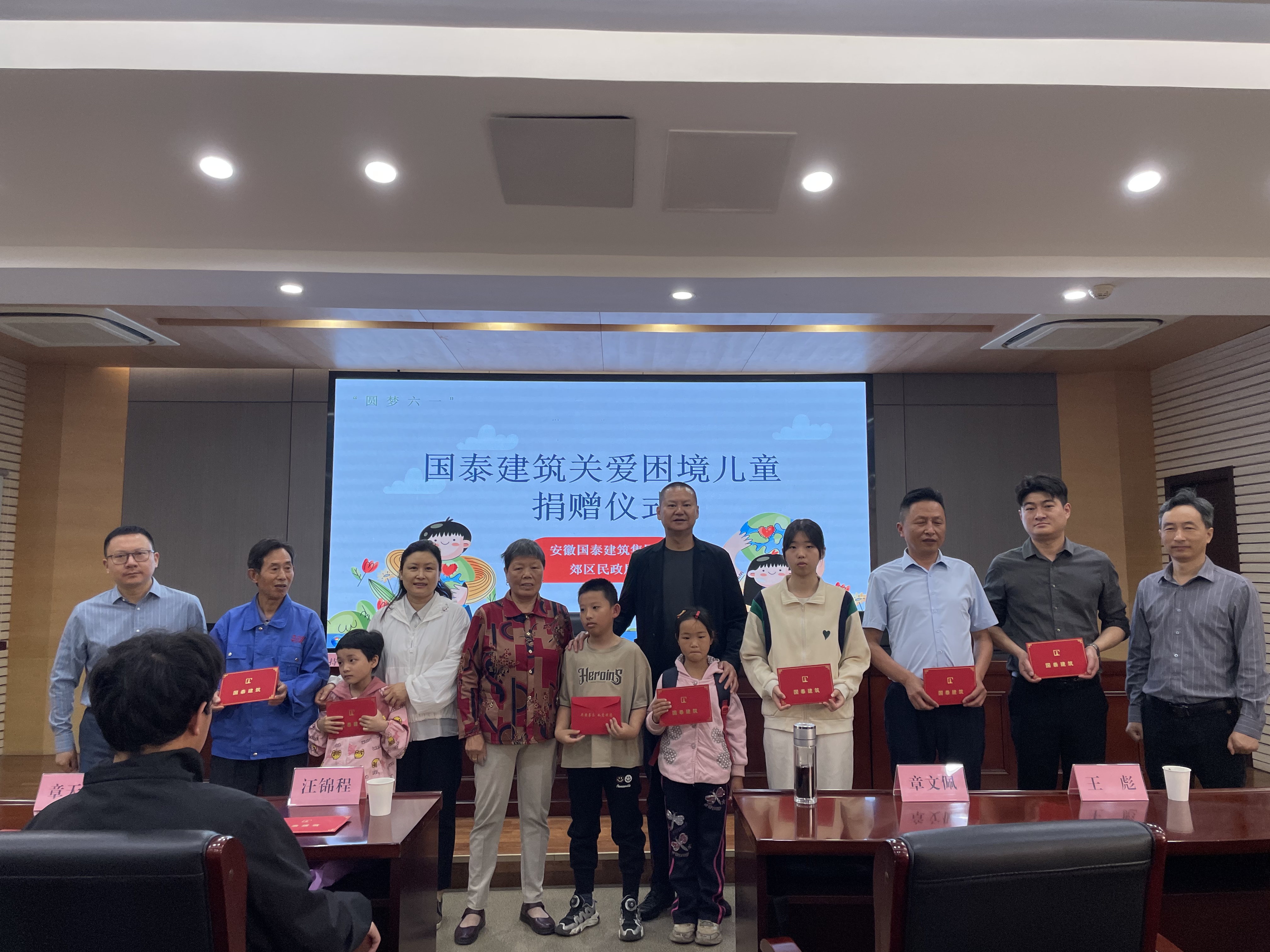 本次捐贈活動是國泰建筑連續(xù)第十年以捐贈形式,關(guān)注關(guān)愛困境兒童。未來,公司在經(jīng)營好企業(yè)的同時,將繼續(xù)牢記社會責(zé)任,尤其是關(guān)心兒童事業(yè),讓更多的困境兒童健康成長。