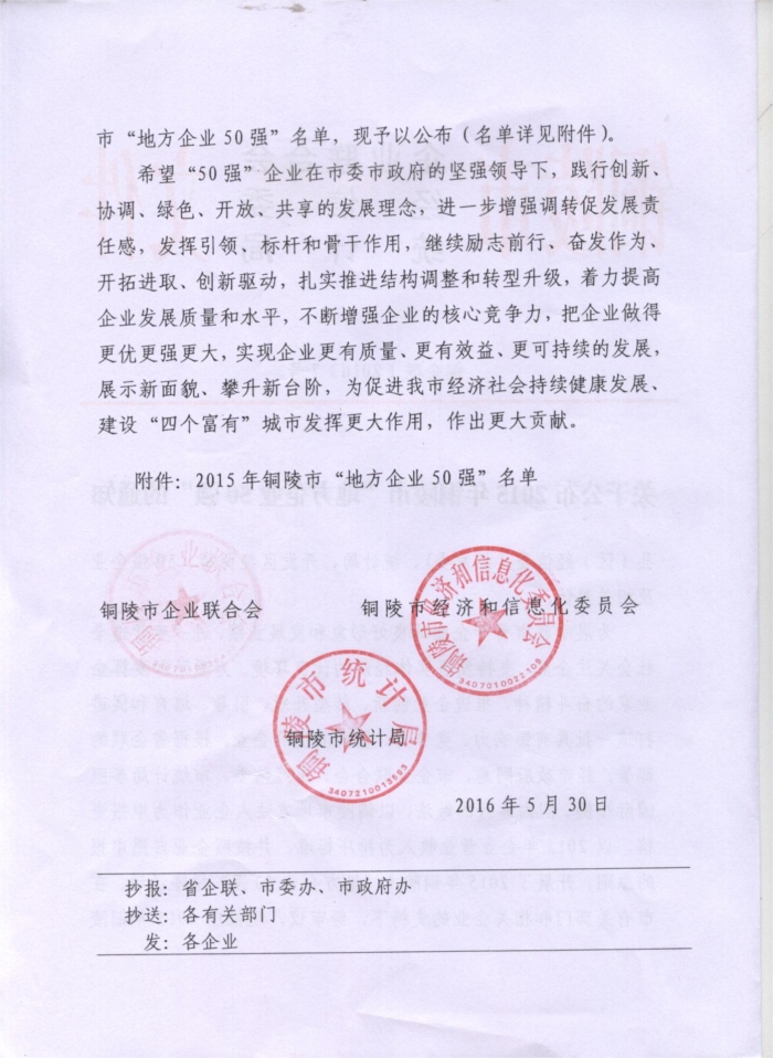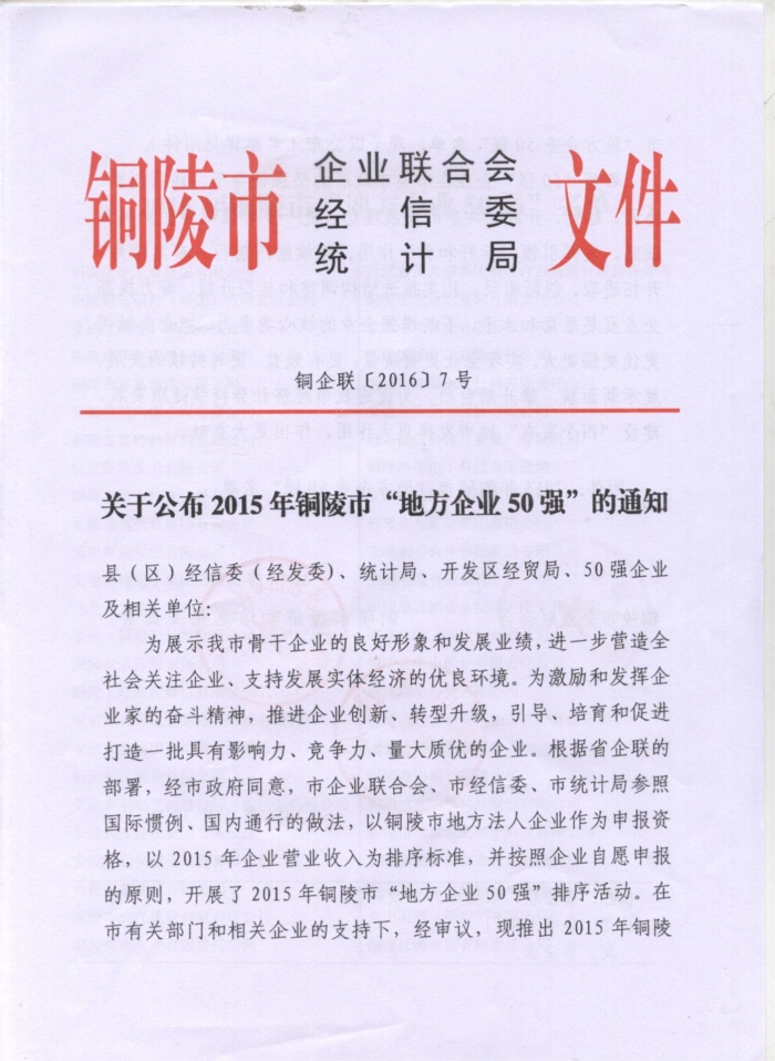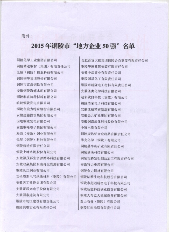 熱烈慶祝安徽國泰建筑有限公司榮獲2015年銅陵市“地方企業(yè)50強”稱號