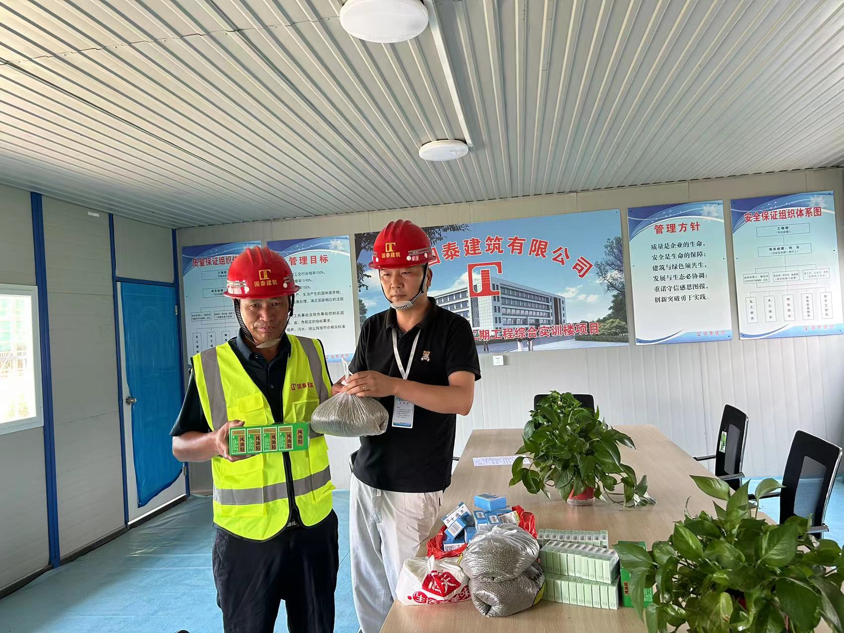 國泰建筑總經(jīng)理張四兵在項目現(xiàn)場提醒各部門要做好防暑降溫工作,各項目工地的一線工人是項目建設(shè)的中堅力量,吃住在工地、工作在工地,面對酷暑高溫和繁重工作,非常辛苦,向他們表達了敬意和感謝,并勉勵全體職工抓好安全,確保身體健康。要求各項目部要將夏季安全生產(chǎn)工作擺在重要位置,嚴(yán)格執(zhí)行項目安全規(guī)定,關(guān)心愛護一線工人,教育引導(dǎo)廣大職工在保健康、保安全、保質(zhì)量的同時,高效率、高標(biāo)準(zhǔn)推進項目建設(shè)。一句句暖心又真切的話語縈繞在每位職工的心頭。