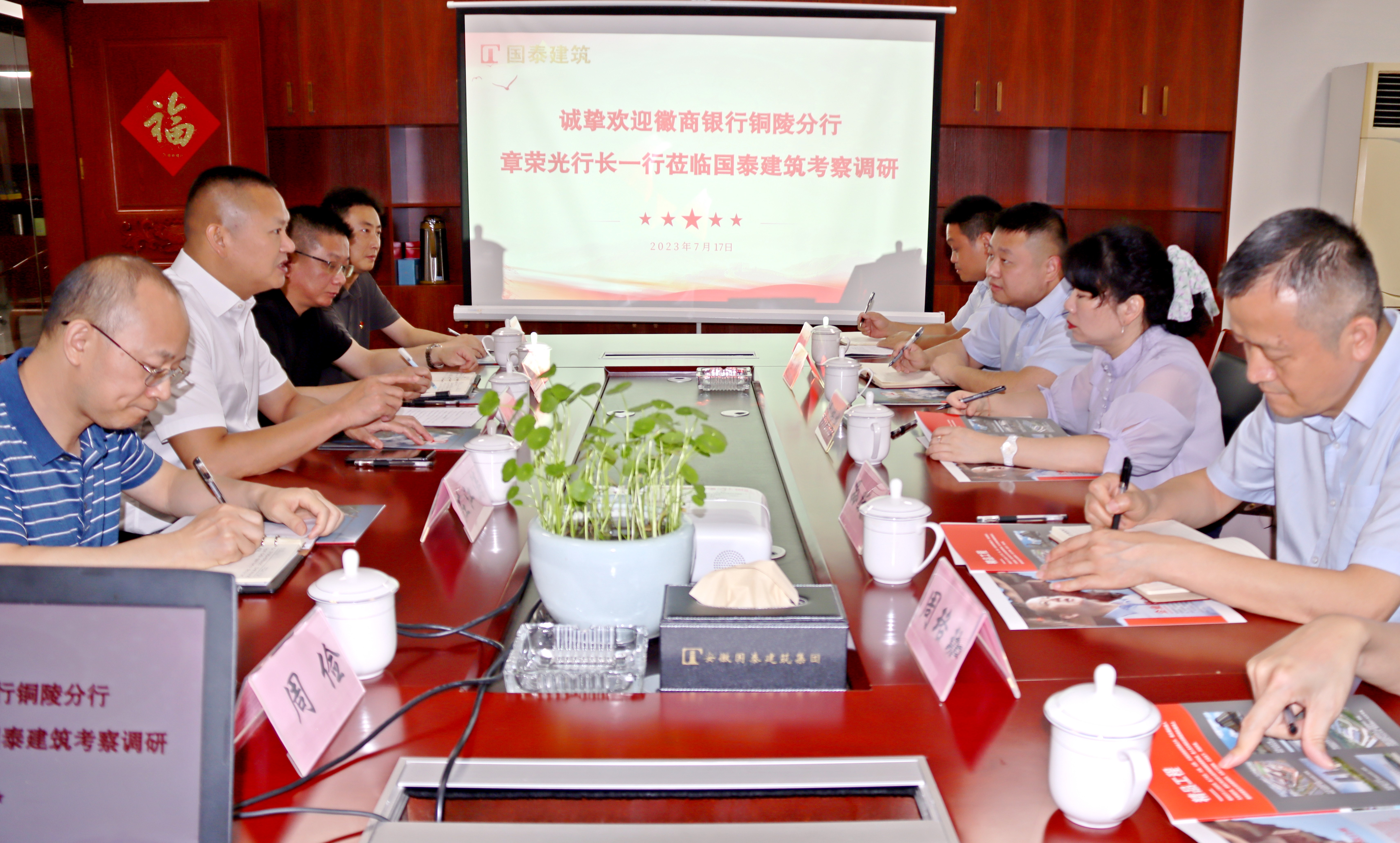 2023年7月17日下午,徽商銀行銅陵分行與國泰建筑簽約授信儀式在國泰建筑集團總部隆重舉行?;丈蹄y行銅陵分行副行長章榮光出席儀式并講話,國泰建筑董事長張自州應(yīng)邀參加?;丈蹄y行銅陵分行、徽商銀行銀宵支行相關(guān)領(lǐng)導(dǎo)及國泰建筑財務(wù)部負(fù)責(zé)人出席并見證儀式。