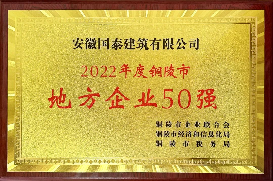 喜訊!國泰建筑榮獲2022年度銅陵市“地方企業(yè)50強”