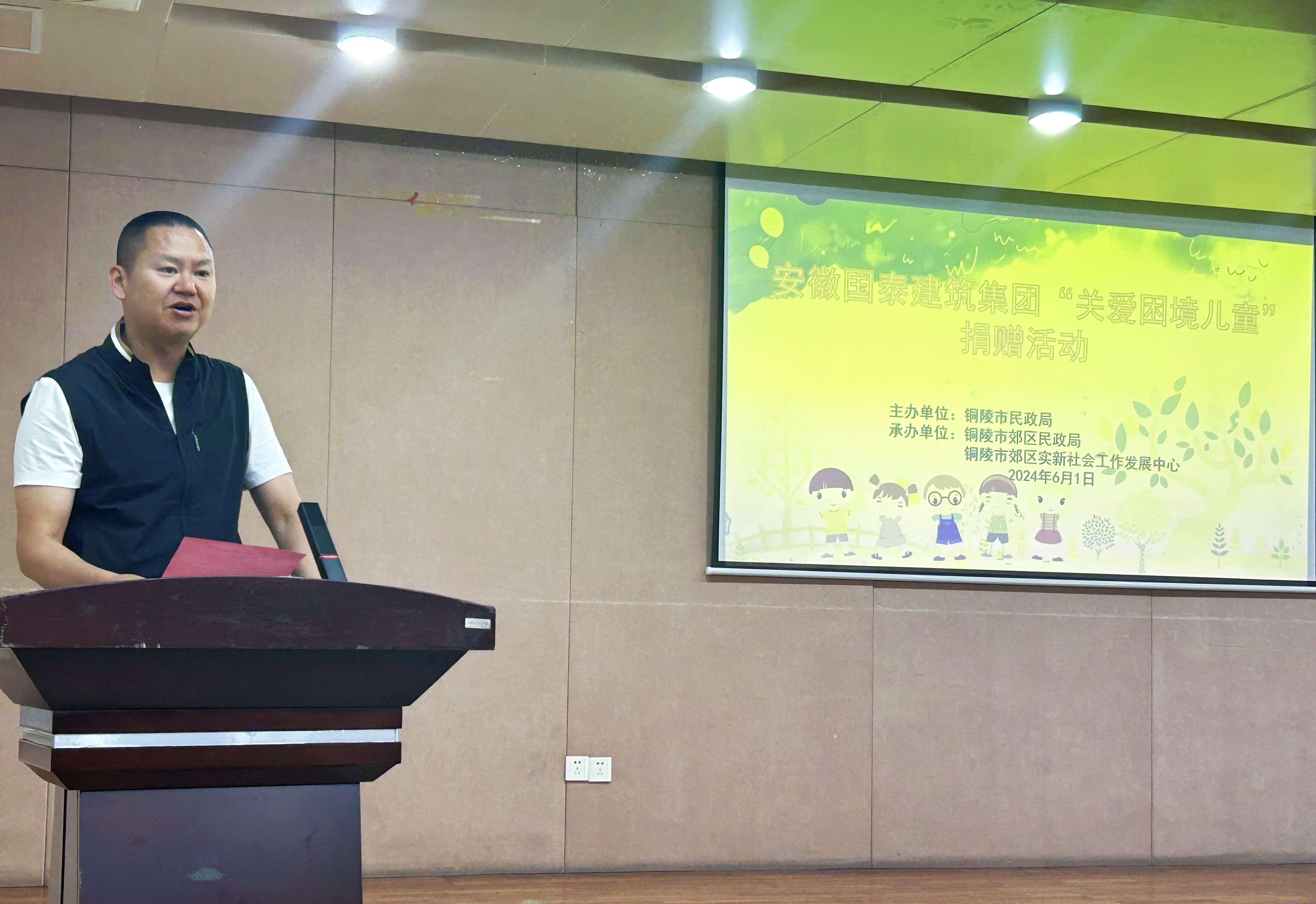 捐贈活動上,國泰建筑董事長張自州說:國泰建筑致力于企業(yè)發(fā)展,同時不忘初心,牢記社會責任,愿意在關(guān)愛兒童成長方面盡自已的微薄之力。